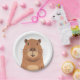 A charming illustration of a capybara looking straight ahead with a calm and gentle expression. The image captures the capybara’s unique features, including its round face, expressive eyes, and distinctive whiskers. The minimalist style and earthy tones add to its endearing appearance, making it an appealing visual for animal lovers.