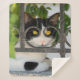 A cute bicolor piebald cat is looking attentively through a wrought iron fence, it seems as though she wears glasses frames. This sherpa blanket is a gift idea for pet and cat lovers. Photo taken by Katho Menden on a Greek islands.
