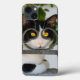A cute bicolor piebald cat is looking attentively through a wrought iron fence, it seems as though she wears glasses frames. This case is a gift idea for pet and cat lovers. Photo taken by Katho Menden on a Greek islands.