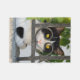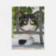 A cute bicolor piebald cat is looking attentively through a wrought iron fence, it seems as though she wears glasses frames. This soft fleece blanket is a gift idea for cat lovers. Photo taken by Katho Menden on a Greek islands.
