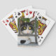 A cute bicolor piebald cat is looking attentively through a wrought iron fence, it seems as though she wears glasses frames. These playing cards are a gift idea for pet and cat lovers.
