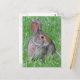 Postcard design features a photograph of a Cottontail Rabbit in the grass.