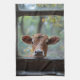 A curious brown cow gazes through a weathered wooden window, evoking feelings of nature and rural charm, framed by greenery and a tranquil rustic backdrop.