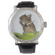 Cute pet themed watch. Features A photograph of a degu peering out from inside a green teapot. Design © Lisa Marie Robinson. All Rights Reserved, It is illegal to use or duplicate this, or any of our images, without written permission.