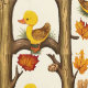 Add a touch of whimsy and charm to your collection with this delightful pattern design featuring playful golden-yellow ducklings, one curiously peeking into a hollow tree trunk. Surrounded by autumn leaves in faded orange, red, and earthy greens, this nostalgic countryside scene evokes the beauty of nature.
