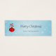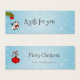 A skinny business card you can use as a gift tag. A funny and cute christmas design. A mischievous and playful white siamese cat. She is looking up at a christmas tree decoration hanging from a pine branch wondering if she should be naughty and play with it or not.