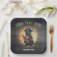 Curious pirate cat deciphers ancient mysteries square Paper Plate: A black cat dressed as a pirate deciphers an ancient document against a retro sunset.