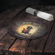 Curious pirate cat deciphers ancient mysteries Round Paper Plate: A black cat dressed as a pirate deciphers an ancient document against a retro sunset.