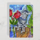 A curious tabby pauses to admire a blooming rose, caught in a moment of gentle wonder. This watercolor design celebrates the everyday magic of observation, affection, and feline mischief.