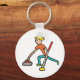 Curling design shows curler in action of releasing the granite slide stone - sending it on the way to the target area in this winter sport game of curling. Holds broom in other hand in this fun cool graphic for curling fans and players.