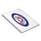 A design for anyone who loves the winter sport of curling. Two curling stones, in the circular target house of an ice rink.