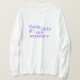 I love this shirt. I had written to the artist asking her if this picture was available on a shirt, and she wrote me back telling me where I could find the shirt. These shirts can be custom made to have a different saying. I loved this saying and went with it. The artist wrote me back later to tell me that she had seen my order go through. How's that for service? Pretty special. It's just as displayed. Perfect!