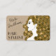 Elegant hair stylist business card with gold and black colours. Personalise this business card template with your name, qr code and social media.