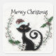 Curly Tailed Black Cat with Christmas Hat Square Sticker