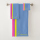 Cursive Blue Yellow And Hot Pink Striped Bath Towel Set
