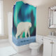 A cute polar bear (Ursus maritimus), done in a simple primitive, or naive style, walks on the polar ice, the Aurora Borealis (Northern Lights) glow brightly in the background. Customise by adding your own text.