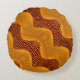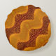 Curva laranja e pontos dourados sobre fundo marrom round cushion