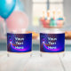 A multi-colour fractal image of concentric loops superimposed on a starry background. Customise by adding your own text.