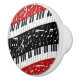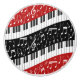 Contemporary curved piano keys and white musical notes with contrasting red and black panels