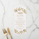 This curved branches gold dinner menu card is perfect for a modern wedding. The classic design features two metallic faux gold foil branches arranged to compose an elegant leafy wreath. This menu can be used for a wedding reception, rehearsal dinner, or any event.