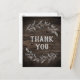 This curved branches wooden thank you postcard is perfect for a modern wedding. The country chic design features the silhouette of two floral branches arranged to compose a rustic leafy wreath on a wood background. Personalise the back of the postcard with your names, your return address, and a thank you message. Alternatively, leave the thank you message template section blank to hand write a thoughtful personalised note on each card after they arrive. These cards can be used for a wedding, bridal shower, or any special event.