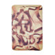 Curved brownish red or burgundy shapes, beige tone bath mat
