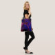Curved strokes over startling red and blue crust tote bag