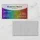 A business card template with a semi-transparent curved header area for the company name and business type etc, with name, job title and other contact details in the section below. The reverse side of the card has been left blank although the base colour is derived using a semi-transparent white image so it matches the semi-transparent header on the front. This can be left blank which is useful for writing notes or can be further customised and/or used for additional text/graphics. This version also has a semi-transparent white texture overlay on both the front and back and a semi-transparent rainbow image on the front which creates the dark rainbow colour variation.