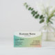 A business card template with a semi-transparent curved header area for the company name and business type etc, with name, job title and other contact details in the section below. The Background and header panel are repeated on the reverse side and can be further customised.
