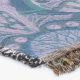 A quality printed throw has its advantages. This is a much finer weave throw than its loopier cousins, and though lighter, it is worth the investment for custom room accessorizing. The back is much prettier than the typical brown, and the fringe on the long sides very vivid, the selvage nicely done. Before photographing, I washed the throw in cold water, delicate, with a thicker woven throw the same size. On tumble dry low, this throw was dry in half the time as the other. This is a very practical quality if you use throws for furniture covers or to wrap up in frequently. The sleekness of the fabric makes it a great layer for accenting or protecting without the feeling of sitting on too much stuff. Perfect for napping or when you feel a light chill coming on. The color printing is beautiful and on this fabric, matched the design and color of my Photoshop image. This is an advantage for blending room fabrics and colors. The fringe on the short sides prints the colors from the design image and therefore varies from the side fringe. I streaked a white fractal line through the plaid pattern to give the illusion of weaving. This printed as crisp as an illusory thread, and put some white in the short side fringe, showing another advantage of print vs loomed- for artistic purposes, line lines, detail, and color integrity can be planned and preserved. My loomed throws have color limitations and more of a needlepoint texture. Print throws reproduce an exact image. The throw felt a little stiff straight out of the package, but this went away in the first delicate wash. Of course I searched the wash water for ink or bleeding and there was none.