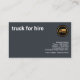 Overleaf, in a similar grey cover, the card details are at the right wall. At the top is the gold logo, followed by the contact details and a slogan option. At the top left corner is the familiar service option "TRUCK FOR HIRE".