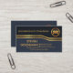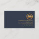 Cover features a black and blue layer demarcated by a pair of striking faux gold stripe that cuts across the card's face.