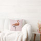 Cotton cushion with reason pink flamingo drawn from a photograph on pink bottom powdered glass dusting.