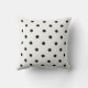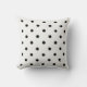 This cushion has a repeating black circle pattern on a white background. It can be designed easily and is chraacterised by its neatness.