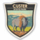 Custer State Park artwork in a badge style design. It is a South Dakota State Park and wildlife reserve in the Black Hills.