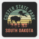 This bold and humourous design features a retro-style sunset backdrop with a dramatic silhouette of a person being launched into the air by a bison. The text "Custer State Park, South Dakota" arches around the scene, emphasizing the park's wild and untamed nature. The playful yet cautionary image captures the essence of wildlife encounters in one of America's most famous bison reserves, making it a perfect design for adventurers, park lovers, and those who appreciate a touch of humour in their outdoor experiences
