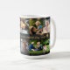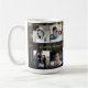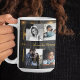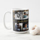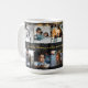 "We are family name and this is our story since year" handwriting custom faux gold brushed calligraphy script (changeable text) and your ten family images over a dark brown barn wood background with strings of twinkle yellow warm lights making a beautiful 10 photo collage mug to mark your anniversary with a keepsake gift or just sip your favourite coffee at home! +++++++++++ Easy to personalise with your custom square images and text!