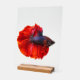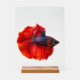 Bring a vibrant, modern accent to your space with this 11" x 14" acrylic sign, featuring a striking red betta fish design. The crisp, clear acrylic surface amplifies the details of the artwork, while the natural wood block stand adds a warm, minimalist touch. Perfect for desks, shelves, or entryways, this piece combines aquatic beauty with sleek contemporary style.