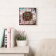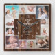 Custom 12 Family Photo Collage Rustic Brown Wood Square Wall Clock
