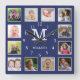 Custom 12 Photo Collage Family Name Monogram Blue Square Wall Clock