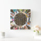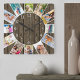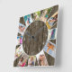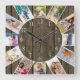Custom 12 Photo Collage Rustic Dark Wood Square Wall Clock