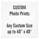 Custom Print 12" x 12" Photo Print Blank Template. Portrait 30.5cm x 30.5cm. Commonly called “30 × 40 cm”. DESIGN YOUR OWN: Fully customisable. Add your own words, text, image and personalise. CHOOSE YOUR CUSTOM SIZE: Choose your own custom size from 4" x 4" up to 40" x 40". Simply click the drop down "Size" menu above "Add to Cart". Then scroll to bottom of Menu. Click "Choose your own size". Enter height, length required. Makes a great personalised birthday, anniversary or Christmas gift, with various additional frame options. Upload your own photo and fully personalise with text (dozens of font style options) and your own image, pattern, motif, or design. MEDIA: Kodak Professional Photo Paper (Satin). Developed specifically for darkroom printing, Kodak photographic paper is a premium silver-halide paper designed to dramatically enhance colours, while maintaining consistent tonal reproduction. Design your own fully customisable, personalised custom size photo print. Bulk buy multiple purchase discount saving options.