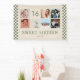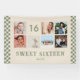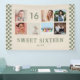 Create your own custom photo collage banner for a 16th Birthday Party. The template is set up for you to add your custom name, age and your favorite photos. Your photos will automatically appear as a photo collage. The banner has a sage green boho style arch and a modern retro checkerboard in cute sage green and cream. The birthday banner is complete with "Sweet Sixteen" and the age 16 lettered in cute script calligraphy typography.