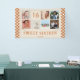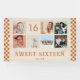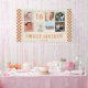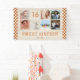 Create your own custom photo collage banner for a 16th Birthday Party. The template is set up for you to add your custom name, age and your favourite photos. Your photos will automatically appear as a photo collage. The banner has a terracotta boho style arch and a modern retro chequerboard in cute terracotta and cream. The birthday banner is complete with "Sweet Sixteen" and the age 16 lettered in cute script calligraphy typography.