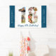 Create your own photo collage banner for a 18th Birthday Party. The template is set up for you to add your custom name or wording and your favourite photos. Your photos will automatically appear as a photo collage in the shape of the number 18. The banner has ocean blue borders with bold white lettering which you can edit to feature a name and last name or year established for example. The birthday banner is complete with "Happy 18th Birthday!" lettered in neat script typography. Please browse our store for coordinating gifts and birthday cards.