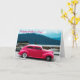 A pink, custom 1940 famous American make sedan at a Sandpoint, Idaho marina. Customisable text reading "Happy Father's Day!" appears on the cover. Sandpoint hosts a Lost In The 50s festival each May; cars of the period are a big part of the event.