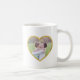 Custom add your own photo mug that can feature two of your own photos in heart shapes with faux gold foil round border against a white background. Great as gifts, for special occasions or for yourself featuring your best family, pet or friends photo.
