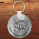 Modern and simple promotional keychain for your business or organisation with a brushed silver faux metallic background. Input a website address on each side to create 2 scannable QR codes and add two lines of custom text, such as your company name, slogan, thank you, etc.