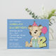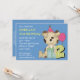 This cute kids second birthday party invitation features a a spotted puppy dog wearing a party hat on a blue background with dots and a big number 2. Can be used as a thank you card, a party invitation, an announcement and more. Completely customisable.