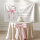 Elegant blush pink coquette bow is decorated with dainty blue and pink wildflowers. Three lines of text let you easily customise your message.